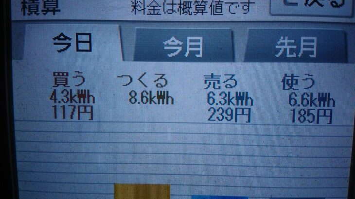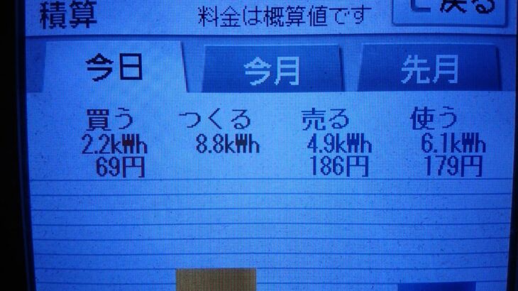 パナソニックHIT240 5kW2020/7/6の太陽光発電量 8.6kWh月次…