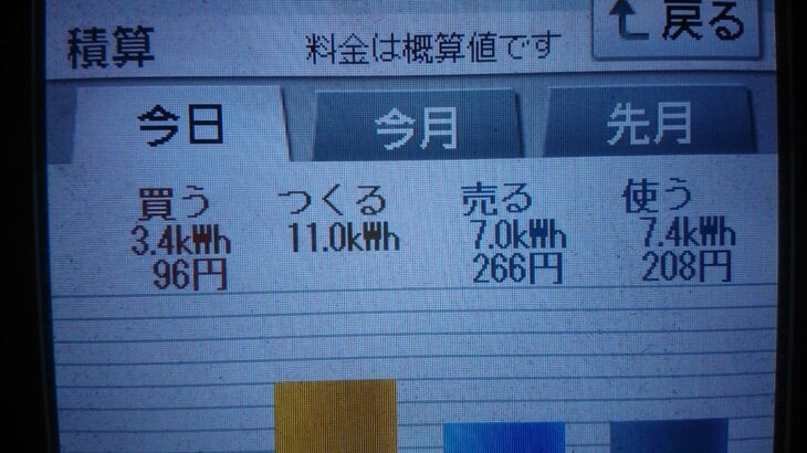 パナソニックHIT240 5kW2020/7/7の太陽光発電量 11.0kWh月…