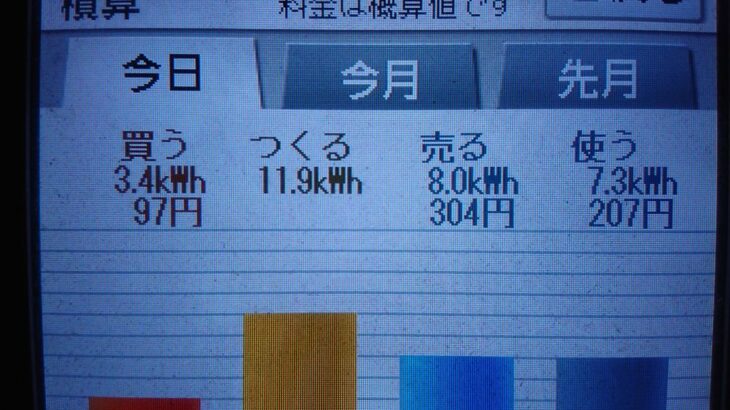 パナソニックHIT240 5kW2020/7/4の太陽光発電量 11.9kWh月…