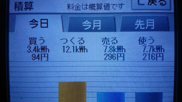 パナソニックHIT240 5kW2020/7/7の太陽光発電量 12.1kWh月…