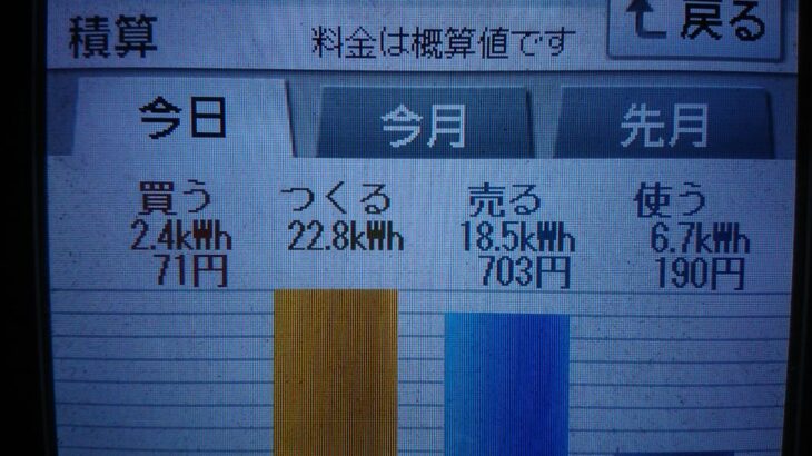 パナソニックHIT240 5kW2020/7/12の太陽光発電量 22.8kWh…