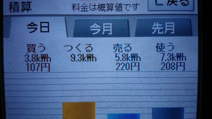 パナソニックHIT240 5kW2020/7/9の太陽光発電量 9.3kWh月次…