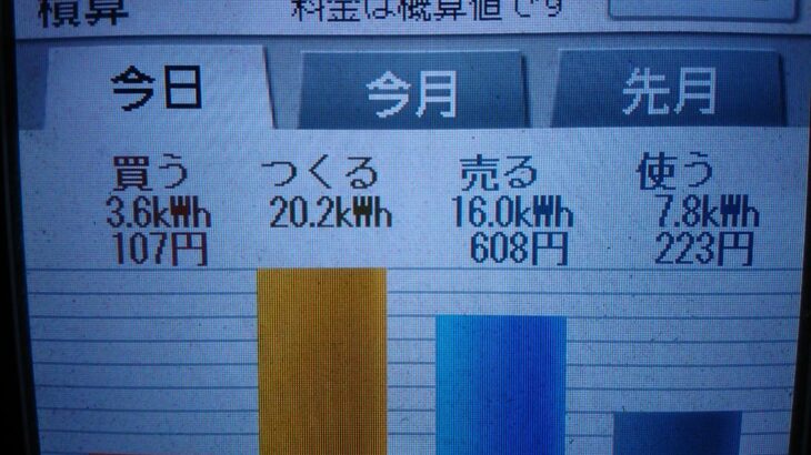パナソニックHIT240 5kW2020/6/6の太陽光発電量 20.2kWh月…