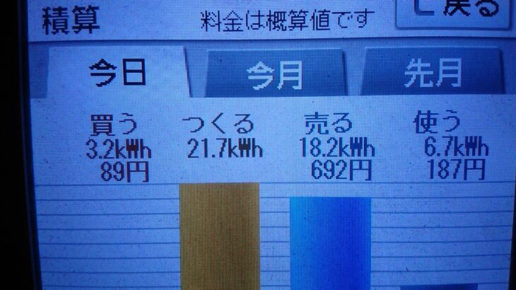 パナソニックHIT240 5kW2020/6/8の太陽光発電量 21.7kWh月…