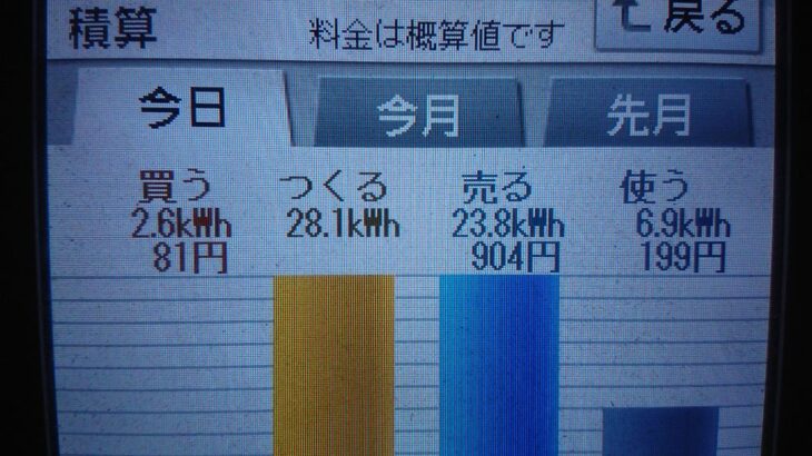 パナソニックHIT240 5kW2020/6/10の太陽光発電量 28.1kWh…