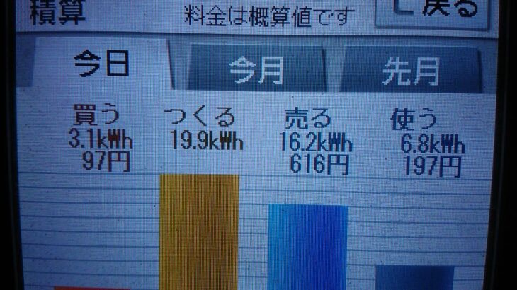 パナソニックHIT240 5kW2020/6/11の太陽光発電量 19.9kWh…
