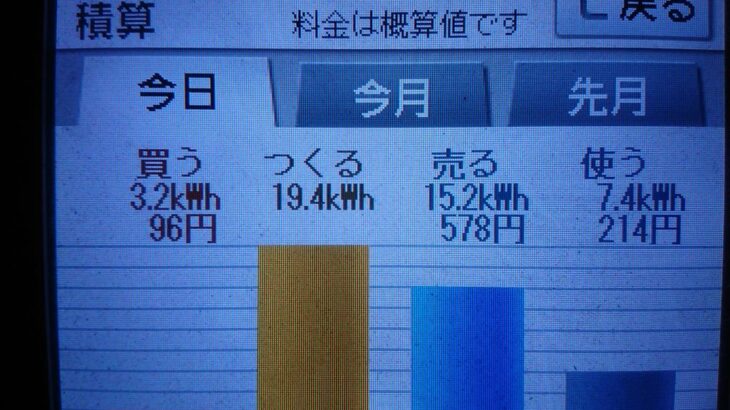パナソニックHIT240 5kW2020/6/12の太陽光発電量 19.4kWh…