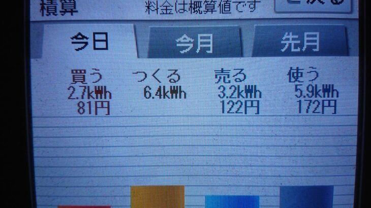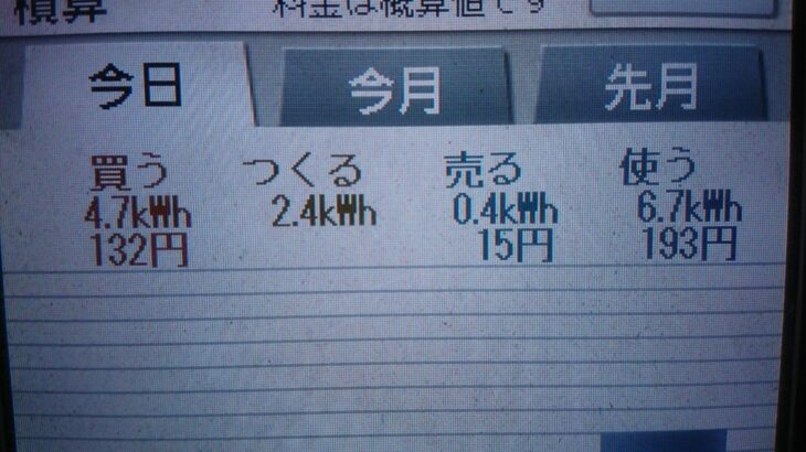 パナソニックHIT240 5kW2020/6/14の太陽光発電量 6.4kWh月…