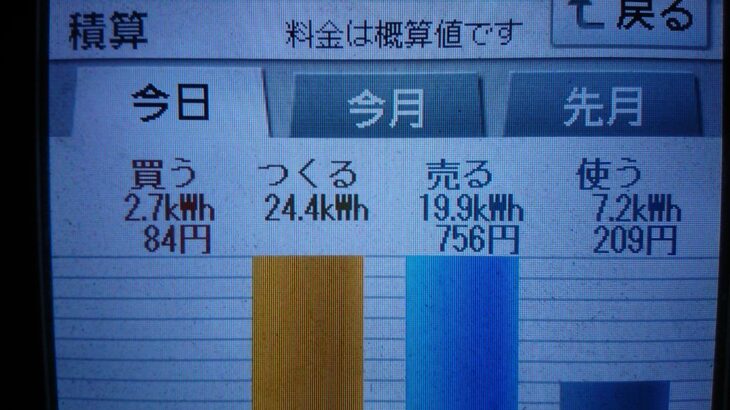 パナソニックHIT240 5kW2020/6/15の太陽光発電量 24.4kWh…