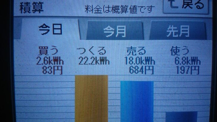 パナソニックHIT240 5kW2020/6/16の太陽光発電量 22.2kWh…