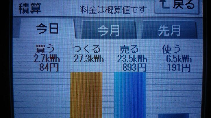 パナソニックHIT240 5kW2020/6/17の太陽光発電量 27.3kWh…