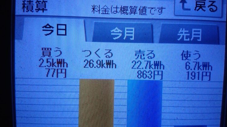 パナソニックHIT240 5kW2020/6/9の太陽光発電量 26.9kWh月…