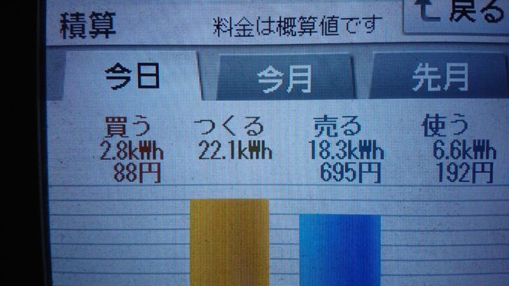 パナソニックHIT240 5kW2020/4/30の太陽光発電量 22.1kWh…