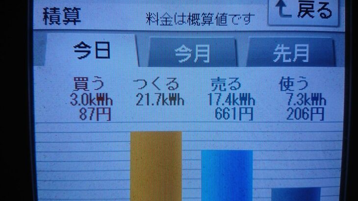 パナソニックHIT240 5kW2020/5/3の太陽光発電量 21.7kWh月…