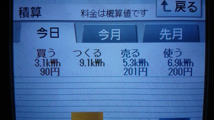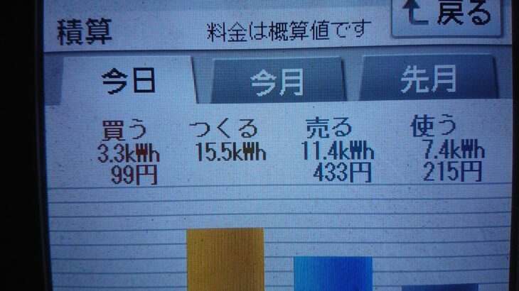 パナソニックHIT240 5kW2020/5/9の太陽光発電量 15.5kWh月…