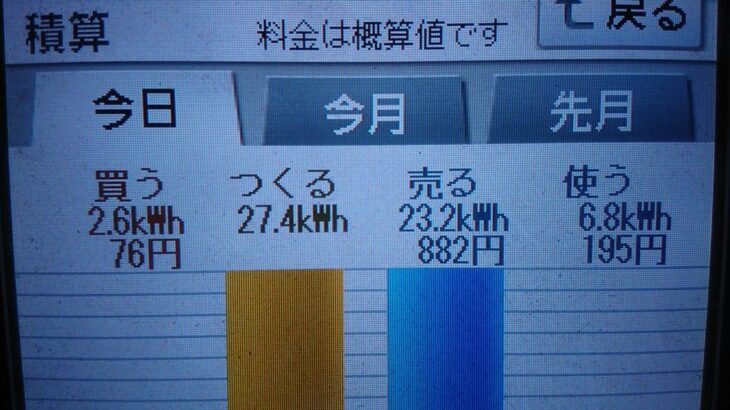 パナソニックHIT240 5kW2020/5/11の太陽光発電量 27.2kWh…