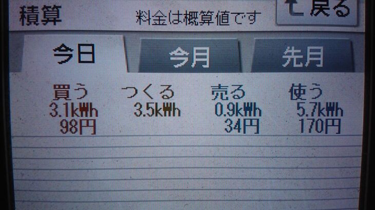 パナソニックHIT240 5kW2020/5/6の太陽光発電量 3.5kWh月次…