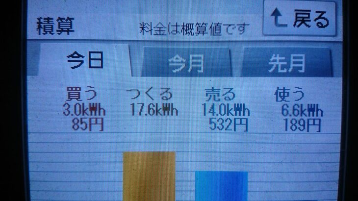 パナソニックHIT240 5kW2020/5/12の太陽光発電量 17.6kWh…