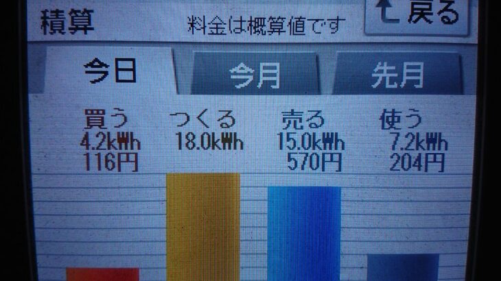 パナソニックHIT240 5kW2020/10/6の太陽光発電量 18.0kWh…