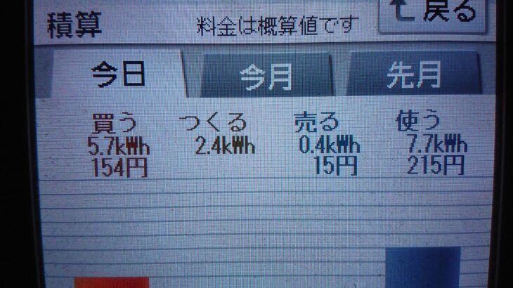 パナソニックHIT240 5kW2020/10/15の太陽光発電量 2.4kWh…
