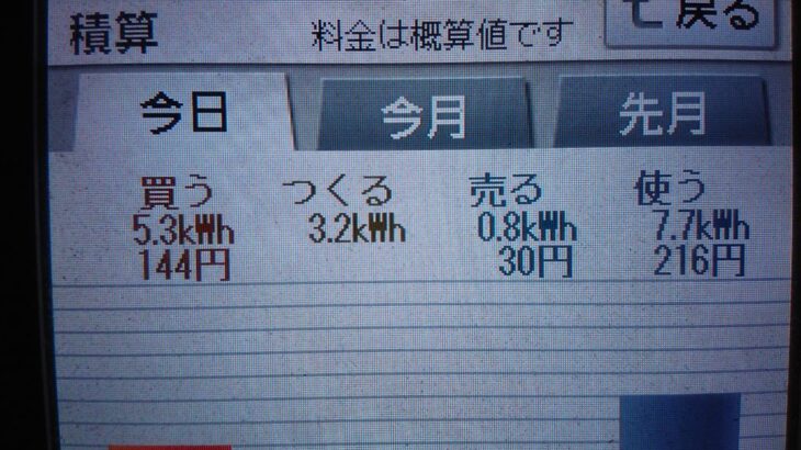 パナソニックHIT240 5kW2020/10/8の太陽光発電量 3.2kWh月…