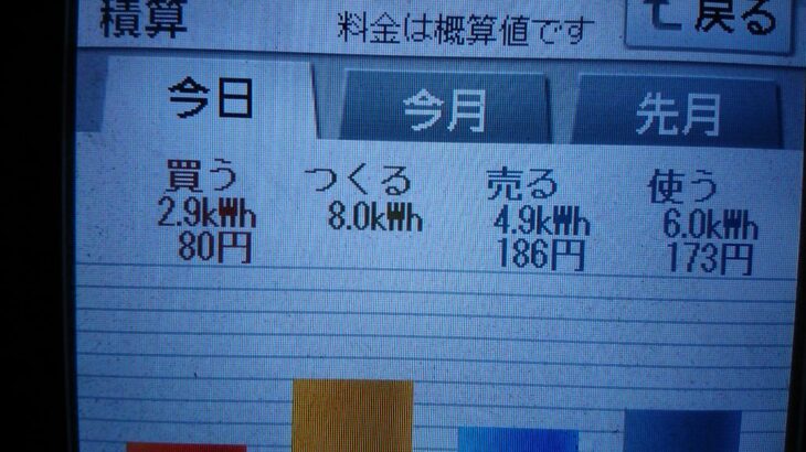 パナソニックHIT240 5kW2020/10/11の太陽光発電量 8.0kWh…