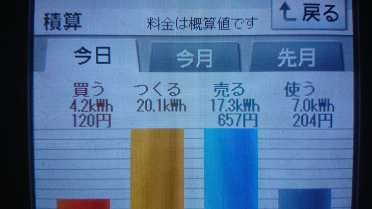 パナソニックHIT240 5kW2019/11/20の太陽光発電量 20.1kW…