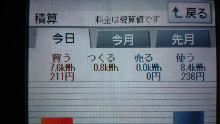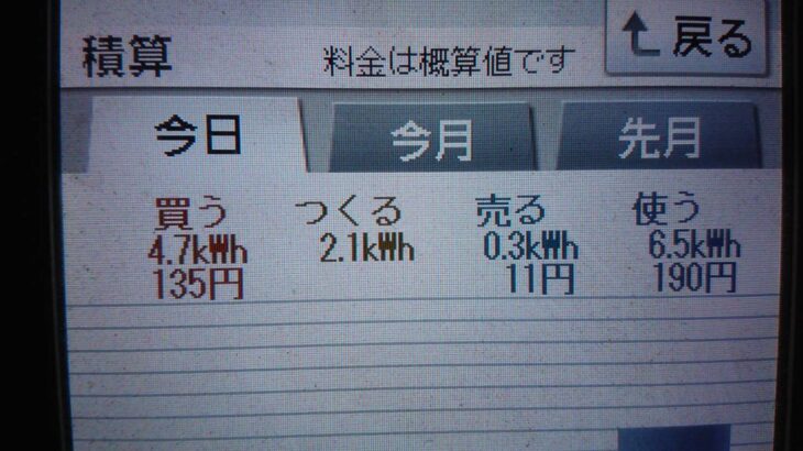 パナソニックHIT240 5kW2019/11/23の太陽光発電量 2.1kWh…
