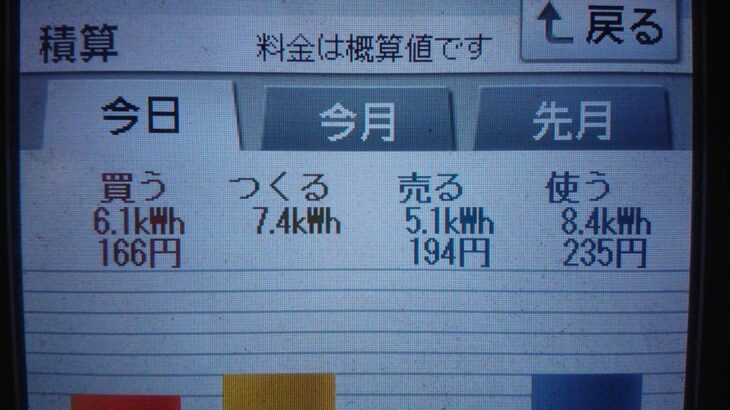 パナソニックHIT240 5kW2019/11/24の太陽光発電量 7.4kWh…