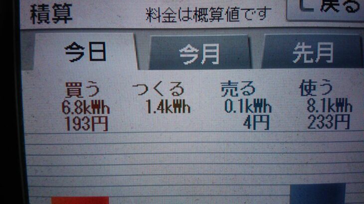 パナソニックHIT240 5kW2019/11/26の太陽光発電量 1.4kWh…