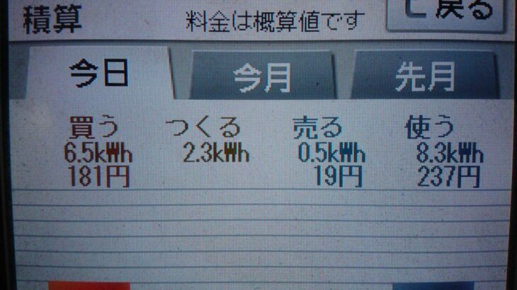 パナソニックHIT240 5kW2019/11/19の太陽光発電量 12.3kW…
