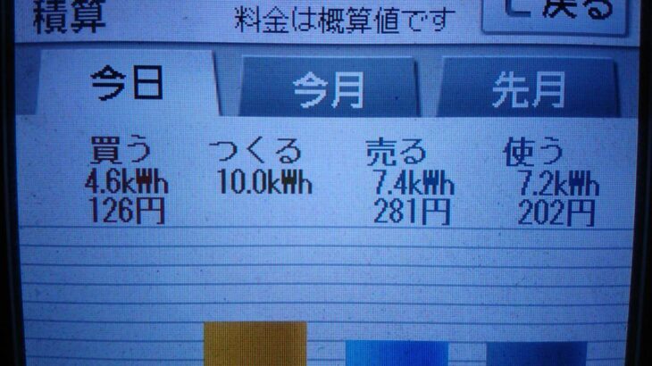 パナソニックHIT240 5kW2019/10/18の太陽光発電量 7.4kWh…
