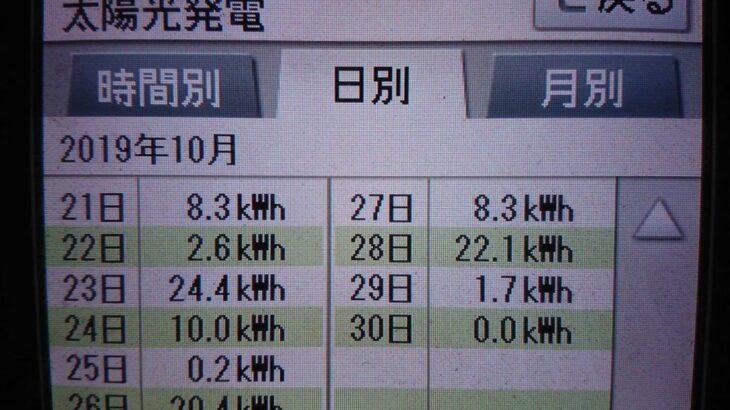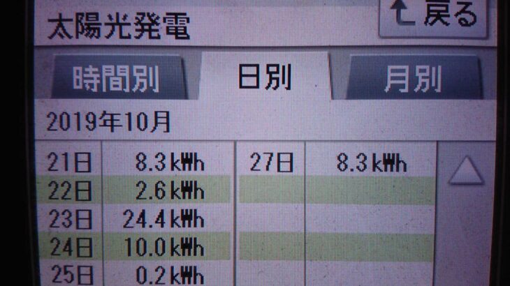 パナソニックHIT240 5kW2019/10/23の太陽光発電量 24.4kW…