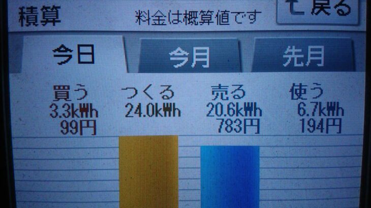 パナソニックHIT240 5kW2019/9/20の太陽光発電量 24.3kWh…