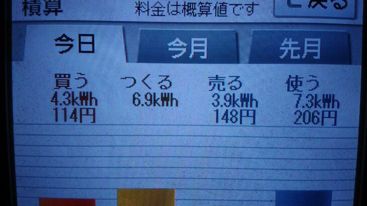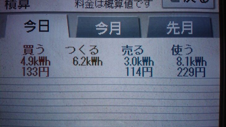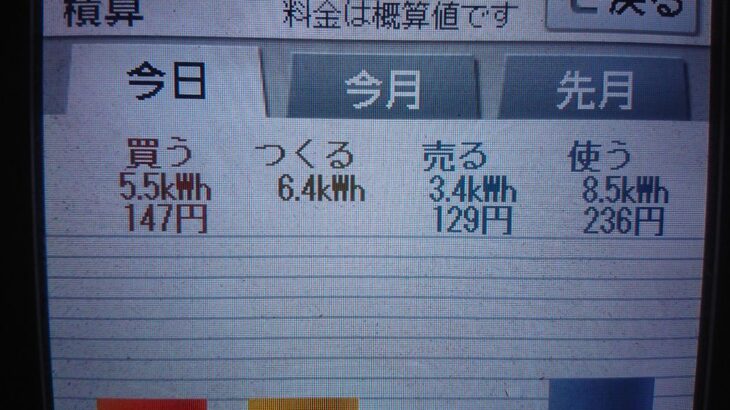 パナソニックHIT240 5kW2020/9/23の太陽光発電量 6.4kWh月…