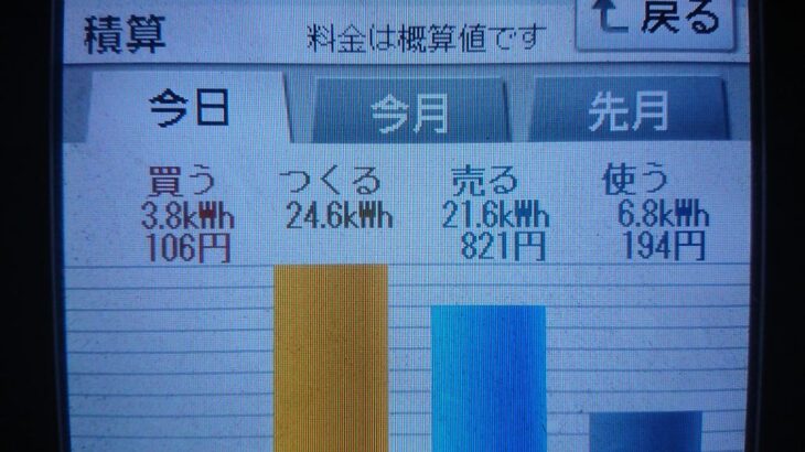 パナソニックHIT240 5kW2020/9/28の太陽光発電量 24.6kWh…