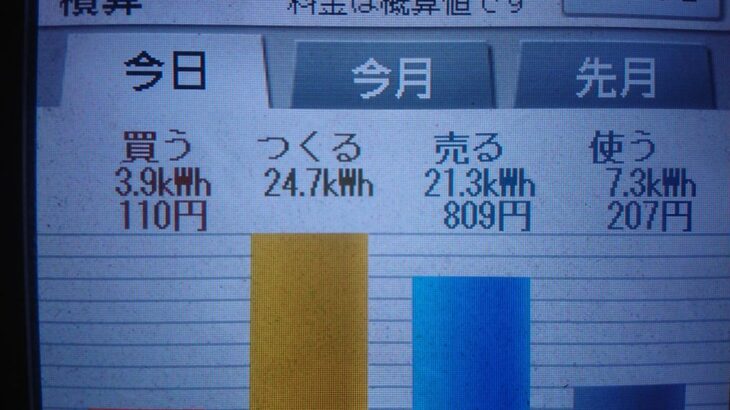 パナソニックHIT240 5kW2020/9/30の太陽光発電量 24.7kWh…