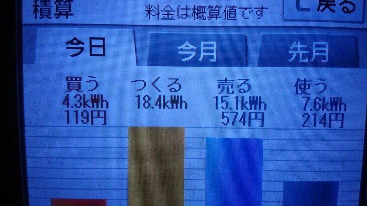パナソニックHIT240 5kW2020/10/3の太陽光発電量 18.4kWh…