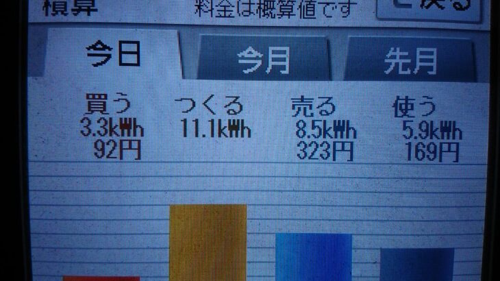パナソニックHIT240 5kW2020/10/4の太陽光発電量 11.1kWh…