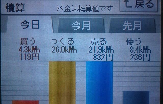 パナソニックHIT240 5kW 2018/8/15の太陽光発電量 26.0kW…