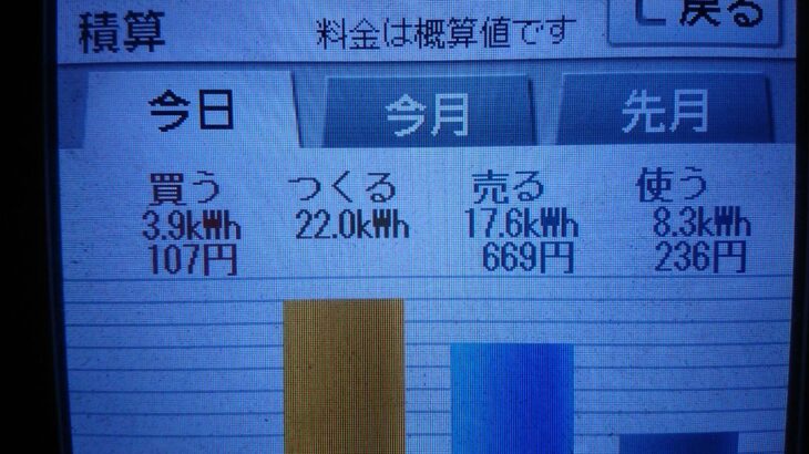 パナソニックHIT240 5kW2020/9/17の太陽光発電量 15.6kWh…