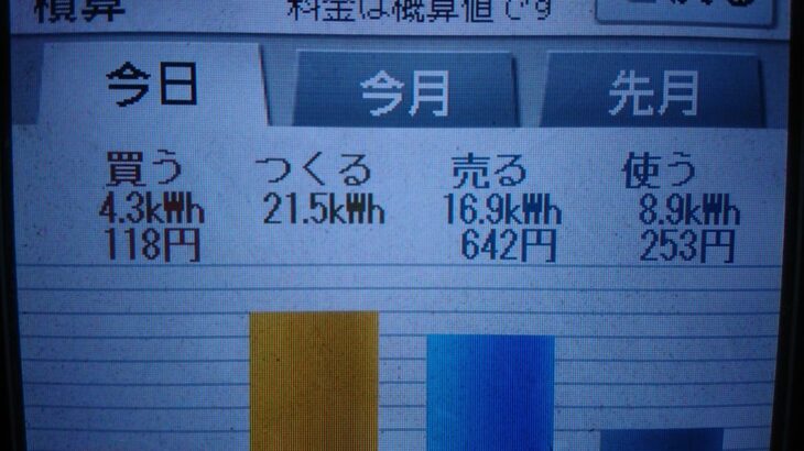 パナソニックHIT240 5kW2020/9/11の太陽光発電量 21.5kWh…