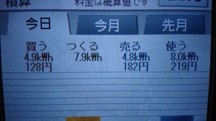 パナソニックHIT240 5kW2020/9/19の太陽光発電量 7.9kWh月…