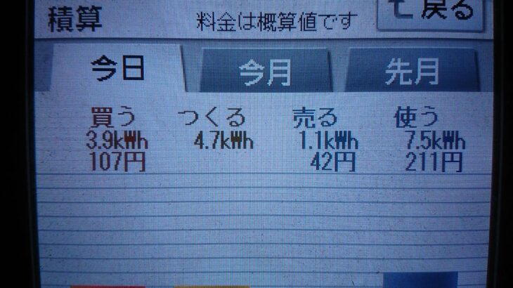 パナソニックHIT240 5kW2020/9/12の太陽光発電量 4.7kWh月…