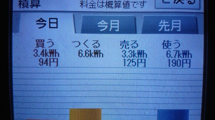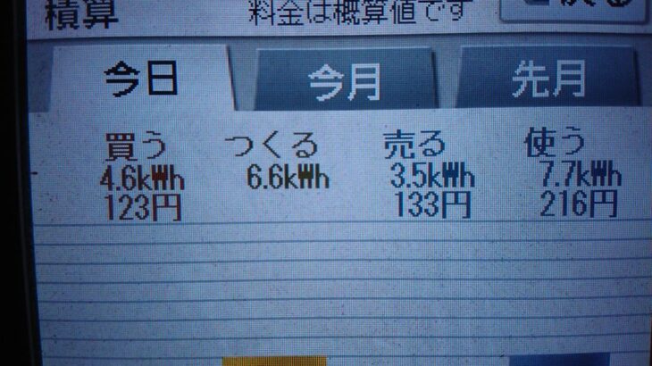パナソニックHIT240 5kW2020/9/14の太陽光発電量 6.6kWh月…