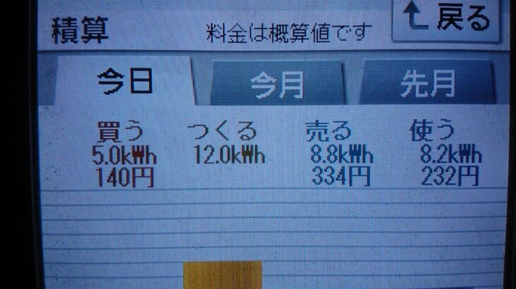 パナソニックHIT240 5kW2020/9/13の太陽光発電量 12.0kWh…