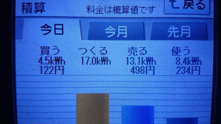パナソニックHIT240 5kW2020/9/18の太陽光発電量 17.0kWh…