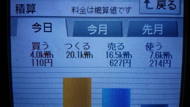 パナソニックHIT240 5kW2020/9/16の太陽光発電量 20.1kWh…