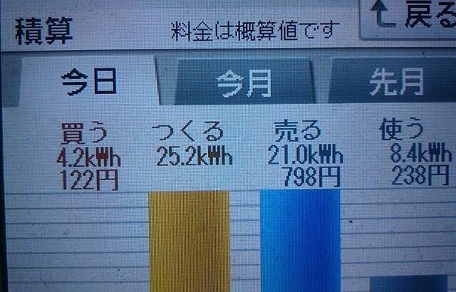 パナソニックHIT240 5kW 2018/7/8の太陽光発電量 25.2kWh…