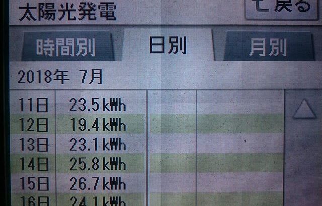パナソニックHIT240 5kW 2018/7/18の太陽光発電量 26.1kW…
